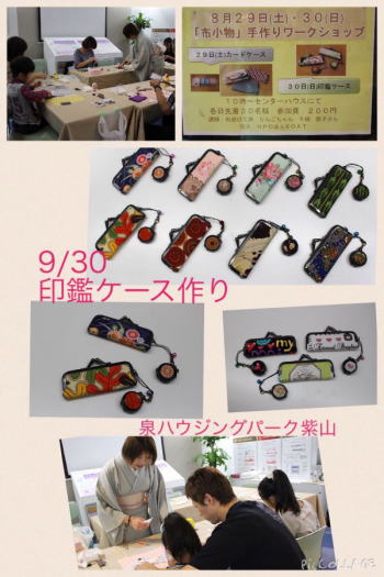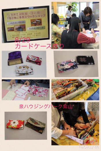 好きな布でがまぐちケースかカードケースのどちらか好きなほうを選んで作るワークショップを開催しました。