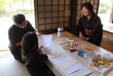 和紙を触った参加者は「優しい感じがする」「厚くて丈夫」と特有の素材感を感じながら、そして柳生和紙の歴史や特徴を聞き「へぇ〜」「仙台に住んでいるのに知らなかった」などと和紙について知識を深めながら制作。