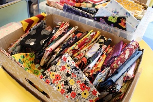 「この柄可愛い!」「いっぱいあって迷う。あれもこれも気になる。」「こんな模様の布もあるんだ〜」などと色々な柄を見て楽しみながら、じっくりお気に入りのものを見つけていました。