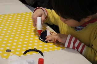 針や糸を使わないので大人も子どもも工作気分で、コミュニケーションも楽しみながら切ったり貼ったりと順調に作業を進め、こちらも最後は素敵なカードケースが出来上がりました。